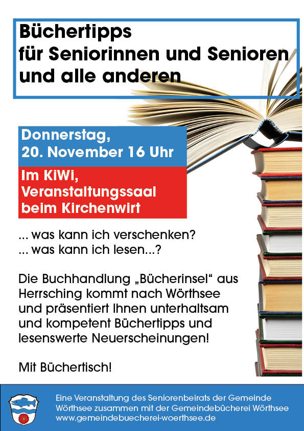 Unsere Bücherei ist ein WOHLFÜHLORT, ein Ort der Medienausleihe, ein kultureller Treffpunkt. Wir haben auch gemütliche Sitzecken, außerdem herrscht bei uns eine besonders nette Atmosphäre und Sie haben einen tollen Blick auf den Wörthsee.